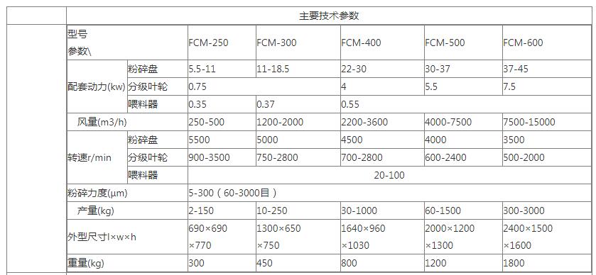 該機主機 內腔為圓筒形,分為上下兩部分,下部分為進氣室,內部中心安裝主軸承座,上部分由分流環分隔成粉碎室和分級室;粉碎室由粉碎盤和齒圈組成,用來將物料粉碎成細粉,分級室由分級葉輪組成,能把細粉分成粒度合格的細粉和不合格的粗粉,合格的細粉經管道被吸出機外,經旋風收集器收集成為成品;該機主要由主機,喂料裝置,出料管,旋風收集器,脈沖除塵器,高壓風機和電控柜等組成。