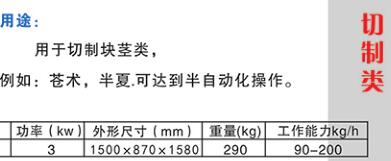 本機器型號一種厚度可調(diào)的息半夏切片機,包括支撐座,支撐座的上表面開設(shè)有第一凹槽和第二凹槽,第一凹槽與第二凹槽之間設(shè)有切片臺,第一凹槽和第二凹槽內(nèi)均設(shè)置有夾緊裝置,切片臺的一側(cè)設(shè)有調(diào)節(jié)刀架,調(diào)節(jié)刀架包括固定柱,手柄和刀板,固定柱的一側(cè)開設(shè)有限位槽,手柄的一端滑動于限位槽內(nèi),手柄的另一端固定于刀板的側(cè)壁上,刀板上均勻設(shè)有多個刀片固定槽,每個刀片固定槽內(nèi)均設(shè)置有切片刀,通過夾緊裝置可對要切片的息半夏顆粒進行夾緊,方便操作人員進行切片動作,操作人員通過調(diào)節(jié)刀架可以根據(jù)實際需要間隔取出相應(yīng)的切片刀來調(diào)整切片刀的數(shù)量,從而控制相鄰兩個切片刀之間的刀距,達到控制切片厚度的目的,結(jié)構(gòu)簡單,操作方便.